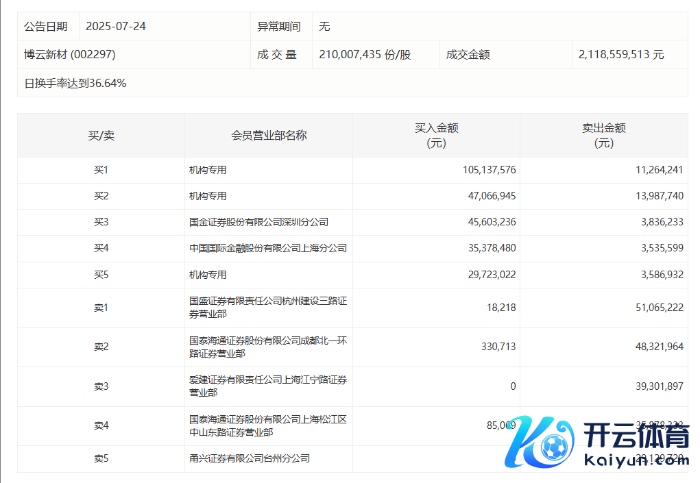 博云新材当天跌6.65%,3家机构专用席位净买入1.53亿元博云新材当天跌6.65%,3家机构专用席位净买入1.53亿元