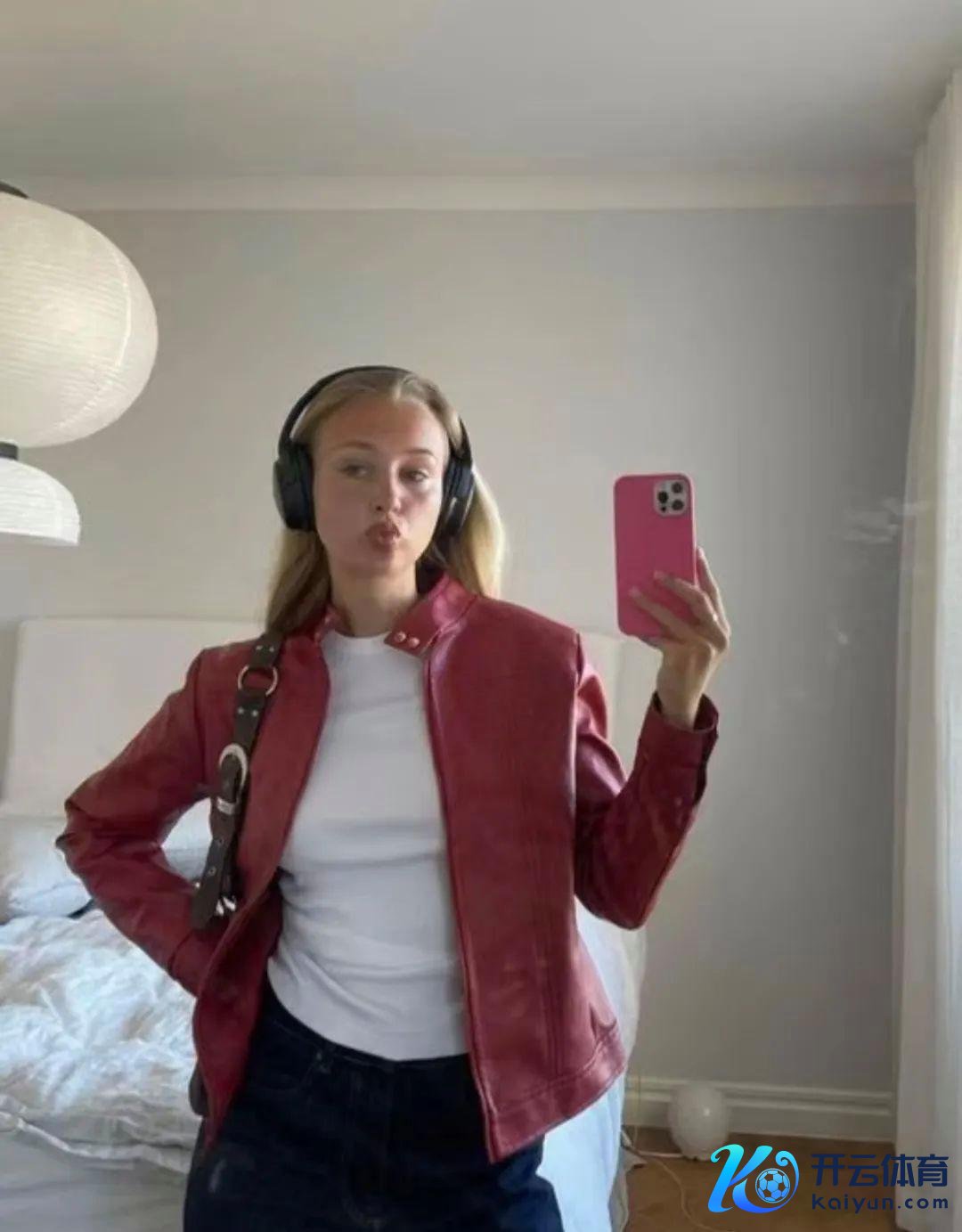 基础色内搭+亮色外衣:内搭和裤子齐是基础色,一件本年大火的安可拉红色皮衣,穿搭俄顷更出彩。