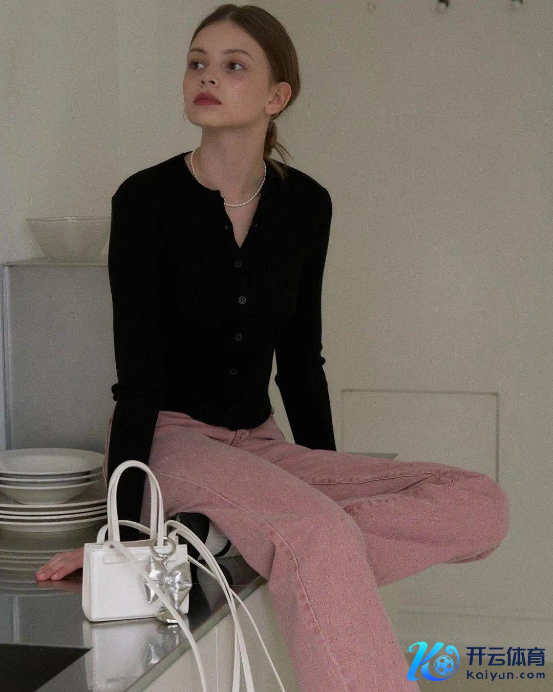 亮色上装+基础色下装:假如你有黑白色裤子或牛仔裤,上半身就不错搭配一件亮色的针织衫,更好地烘托亮色。