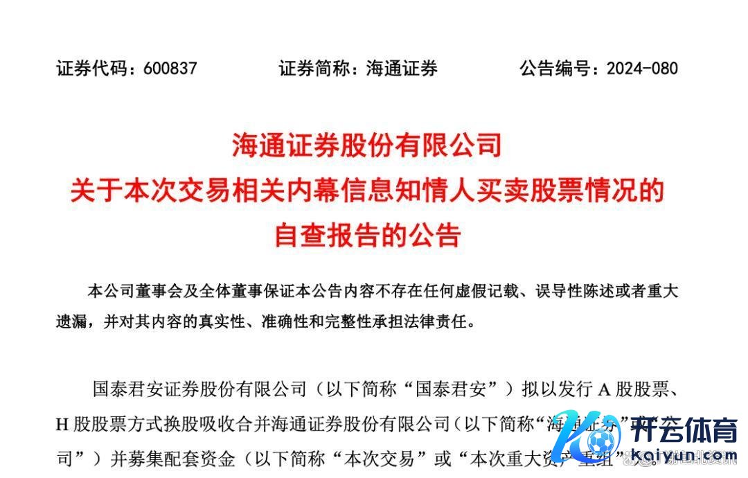 近日,成本阛阓传来一则重磅音讯:国泰君安和海通证券两大券商巨头拟通过换股收受合并,并召募配套资金,这一音讯须臾在金融圈掀翻了山地风云。12月13日,两家公司辨认召开了鼓舞大会,审议关连议案。而就在前一日晚间,两份对于内幕信息知情东说念主贸易股票情况的自查进展悄然发布,波及11名当然东说念主和4家机构,其中不乏国泰君安的高管如副总裁韩志达和总审计师赵宏,这究竟是如何一趟事?