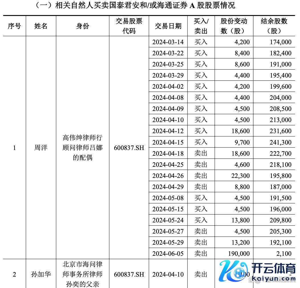 除了韩志达和赵宏外,还有9名当然东说念主和4家机构也被列入了自查边界。他们包括海通证券的境外法律看管人、国泰君安的法律看管人、审计机构立信管帐师事务所的审计员过火配偶等。这些东说念主在自查工夫也有贸易国泰君安和海通证券股票的举止。