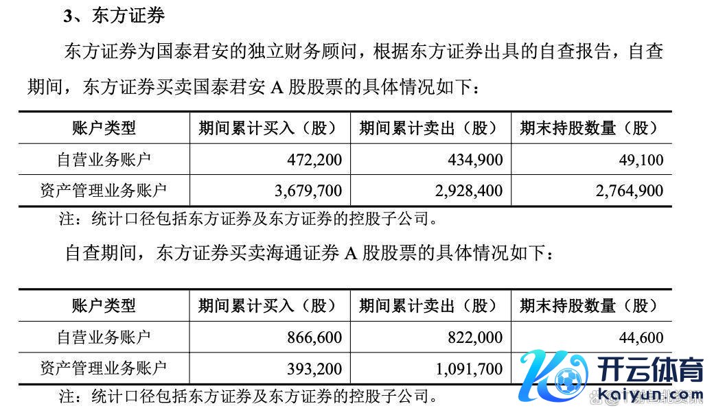 同期,东方证券和中银证券还出具了孤苦财务看管人核查意见,北京市海问讼师事务所和国浩讼师(上海)事务所也出具了法律看管人核查意见。这些意见均以为,上述关连机构及东说念主员在自查工夫贸易国泰君安和/或海通证券A股股票的举止不组成内幕来回举止。