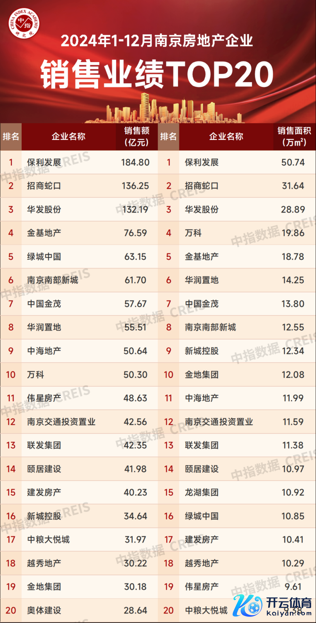 房地产企业销售数据统计与格式销售数据统计均所以2024年1月1日-12月31日历间商品住宅条约销售额为依据,主要依据在南京的销售监测数据;本清楚所提到的TOP20企业共计销售金额与面积均剔除了引诱设立项蓄意重叠诡计额。