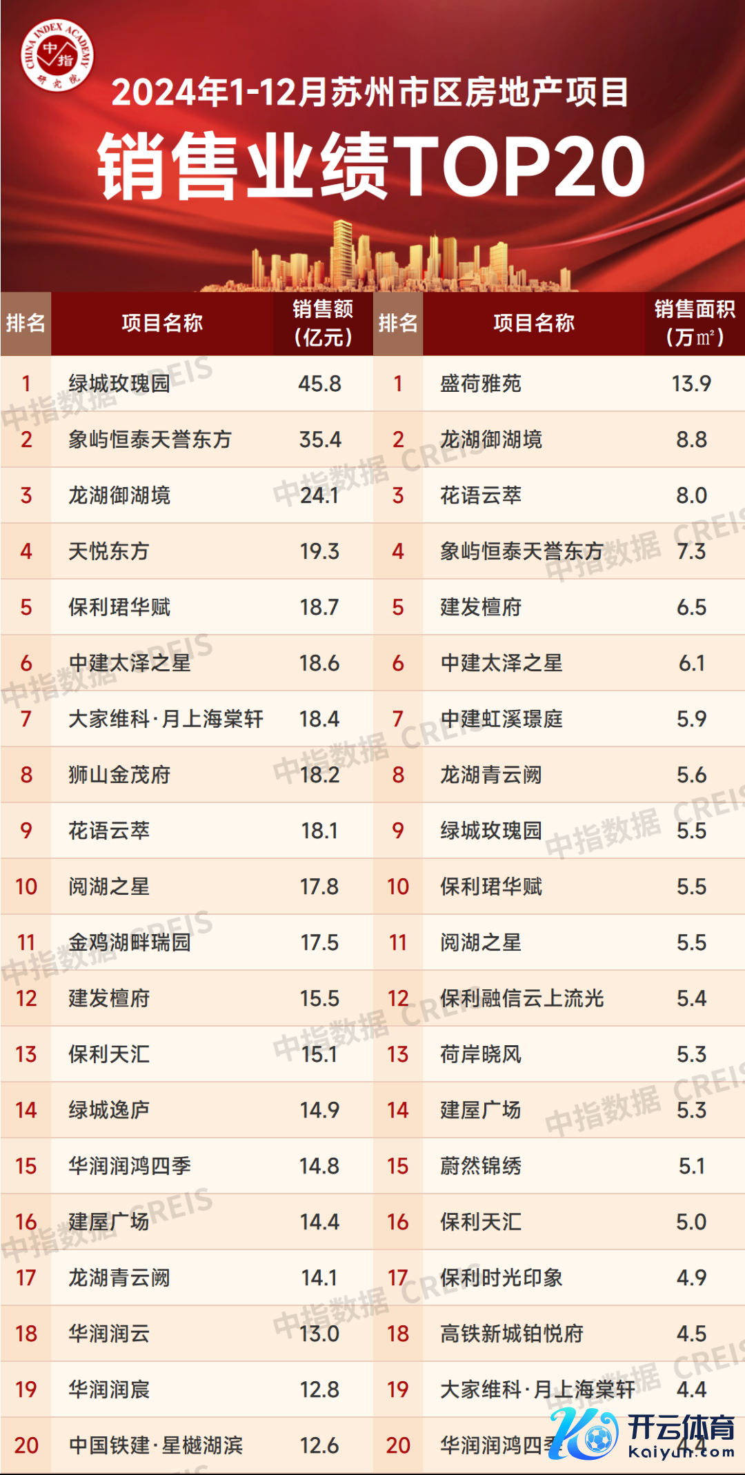 异常声明:房地产企业销售数据统计所以2024年1月1日-12月29日历间销售的商品房为统计口径,主要依据在苏州市区(含吴江)的销售监测数据,并参考当期总体接头情况和推盘去化情况进行分析统计;关于少数莫得在监测领域内的名目,由企业提供相干讲明注解文献,经课题组对数据进行严格审核,也纳入统计领域。本发挥仅供参考,课题组不合使用发挥偏握本体所激勉的任何告成或曲折亏本承担连累。