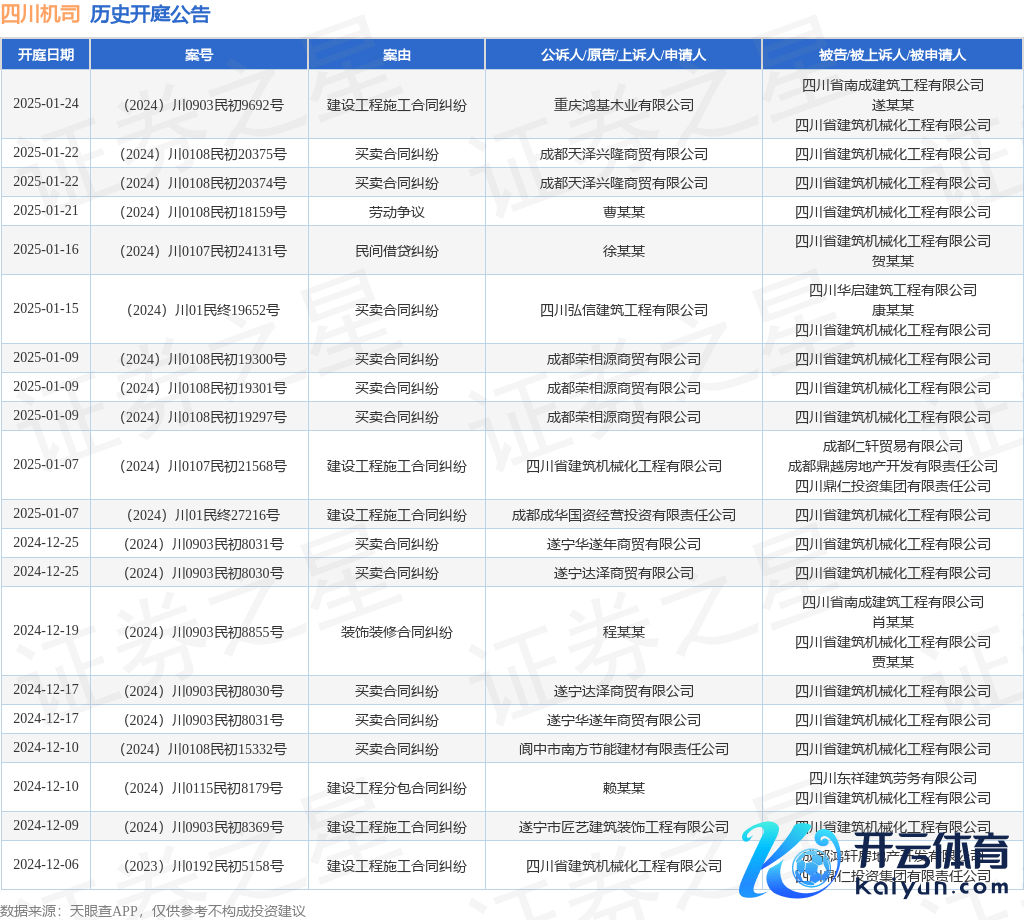 本站音书,笔据天眼查APP裸露,近日公布了一则四川省建筑机械化工程有限公司当作被告/被上诉东谈主的开庭公告,详备现实如下: