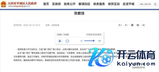 2 月 7 日,山西大同平城区古城街谈发布致歉信称,因该街谈责任门径欠妥,引起"破门亮灯"网上热议,占用多半社会资源,在此向广大社会各界一又友示意真挚的歉意。