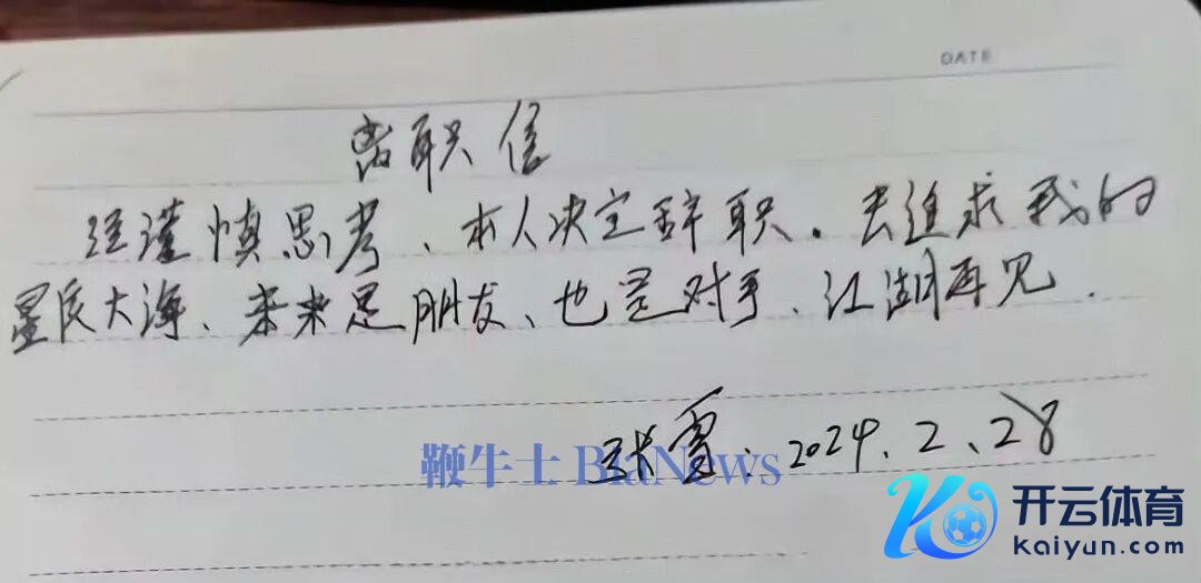 辞职信的执行为:经严慎谈判,本东谈主决定辞职,去追求我的星辰大海,将来是一又友,亦然敌手,江湖再会!