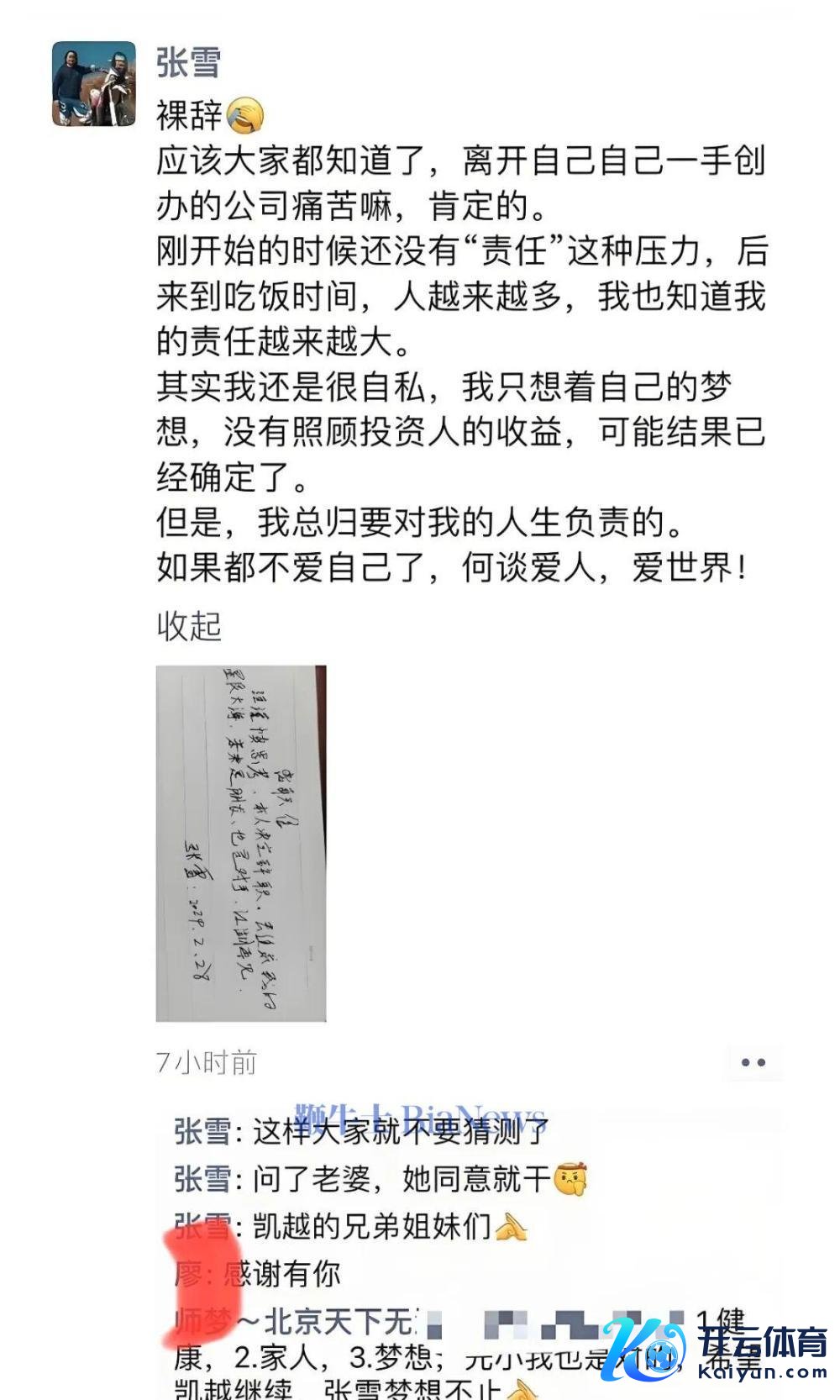 在一又友圈中,张雪默示我方裸辞了!应该环球王人知谈了,离开我方一手创办的公司倒霉嘛。信托的!