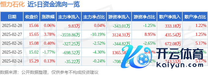 本站音尘,为止2025年2月28日收盘,恒力石化(600346)报收于15.66元,高潮0.06%,换手率0.25%,成交量17.45万手,成交额2.74亿元。
