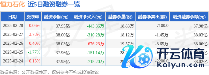 恒力石化融资融券信息流露,融资方面,当日融资买入1824.32万元,融资偿还2267.67万元,融资净偿还443.36万元。融券方面,融券卖出1.29万股,融券偿还5800.0股,融券余量18.83万股,融券余额294.88万元。融资融券余额37.98亿元。